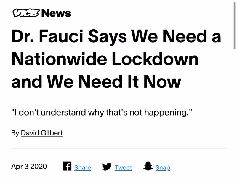 ファウチは現在、国を封鎖すると言ったことは一度もないと主張している.