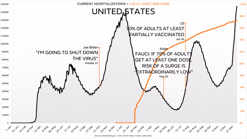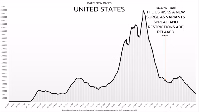 他の多くの問題の中でも、特定のレベルのワクチン接種に到達すれば、将来の急増の可能性が排除されるという彼の予測は、彼が行った他のすべてのことと同様に、ほとんどすぐに間違っていることが証明されました.