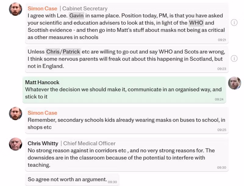 当時の保健長官は、彼の中で一人ではありませんでした 大衆を怖がらせて遵守させたいという願望. によって見られる WhatsApp メッセージ 電報 ハンコック氏のチームの何人かのメンバーが一種の「プロジェクト恐怖」にどのように取り組んだかを示しています。