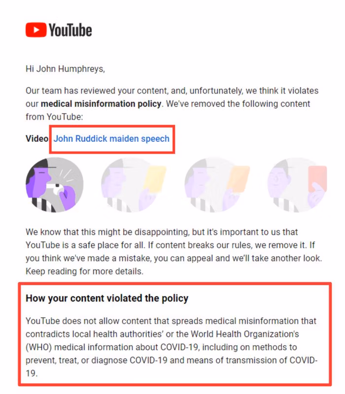 YouTubeは、この動画が同社の「医療誤情報に関するポリシー」に違反していると主張し、YouTubeが「すべての人にとって安全な場所」であり続けるためには動画の削除が必要であることをほのめかした。